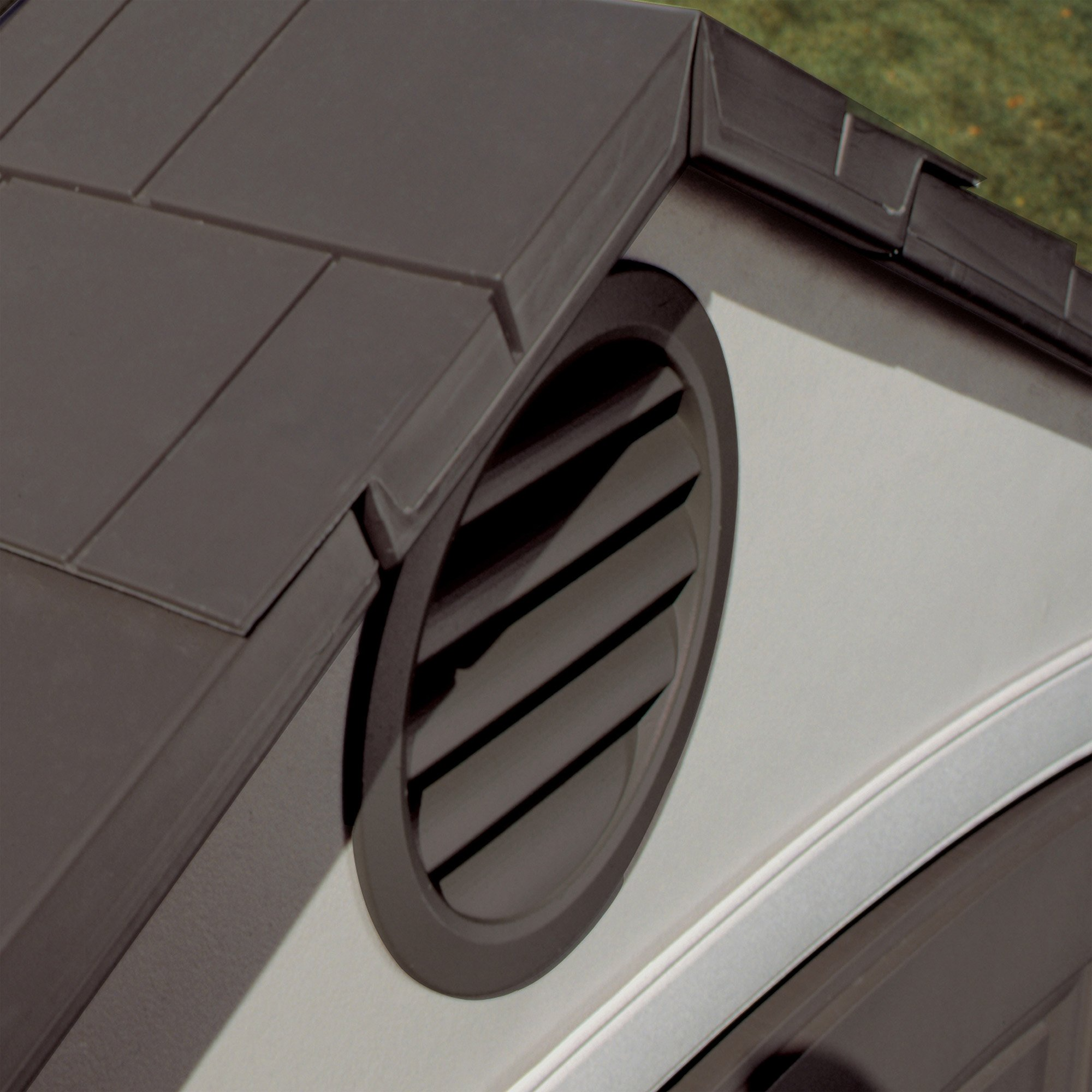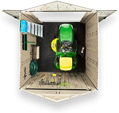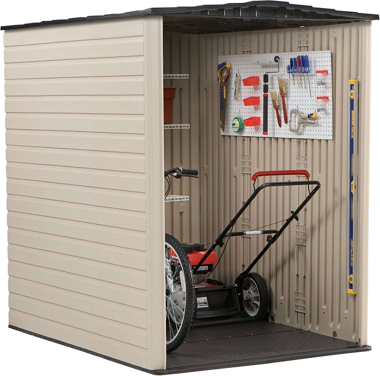 Rubbermaid Large Plastic Vertical Resin Weather Resistant Storage Shed, 5 x 6 Ft., Sandstone, for Garden/Backyard/Home/Pool/Bikes/Lawn Mowers