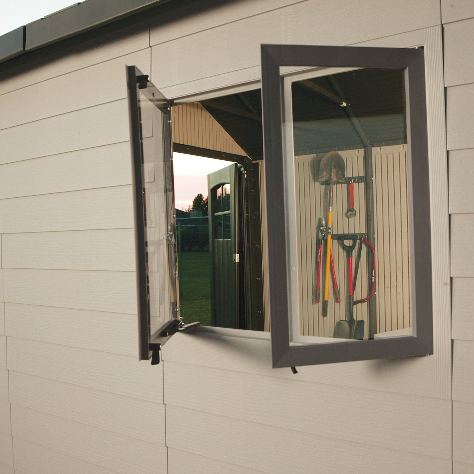 【Storage Shed】【BS】10'x8' Resin Outdoor Storage Shed with Shutters, Windows & Skylights for Garden Patio