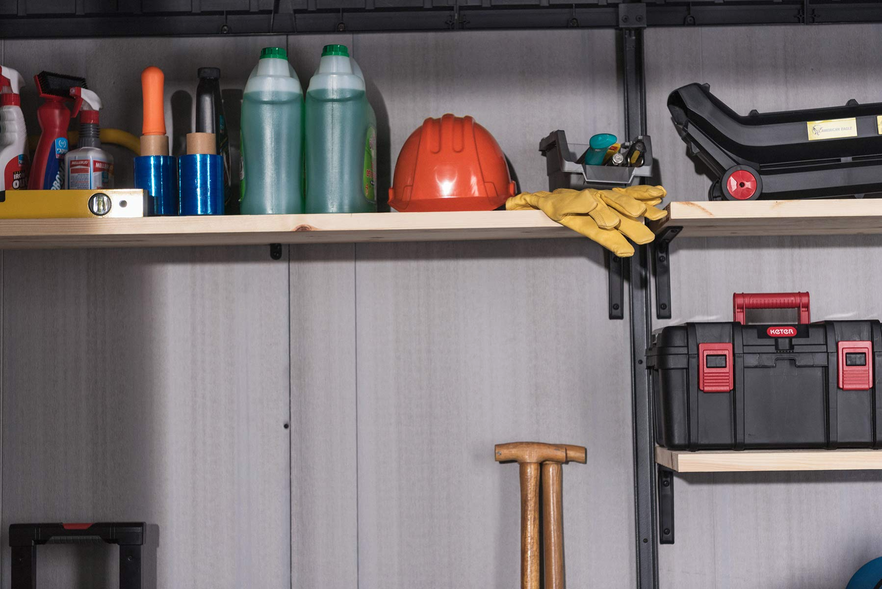 【Storage Shed】30 x 21 x 71 Garden Storage shed, yard tools warehouse 3 storey shelf grey