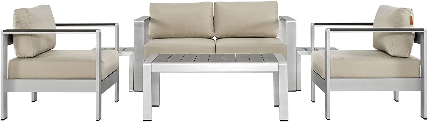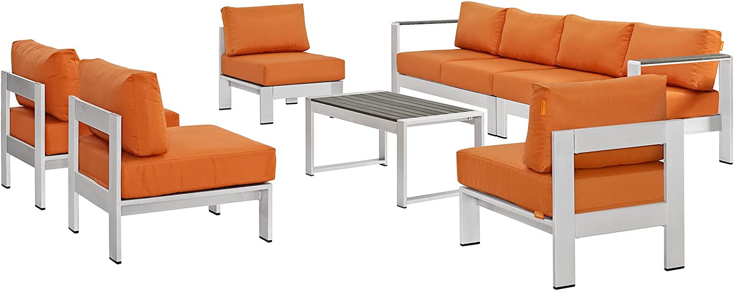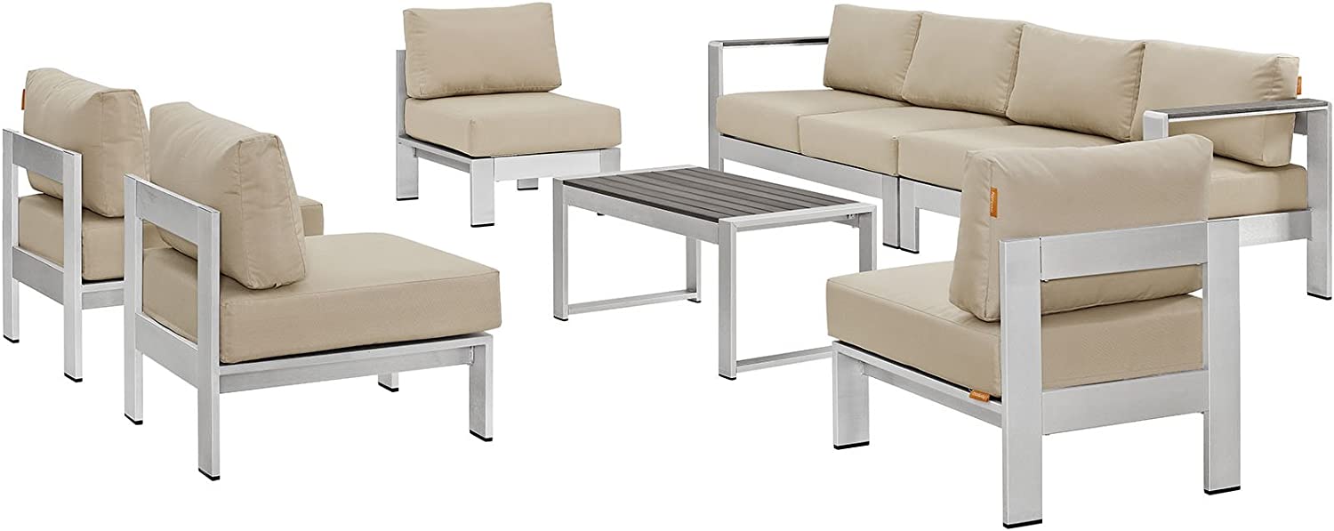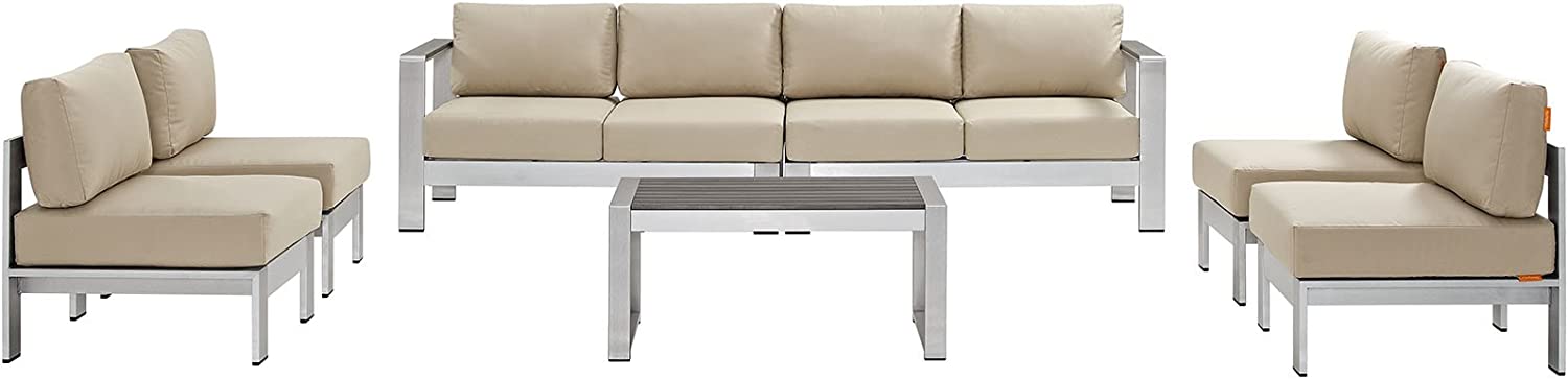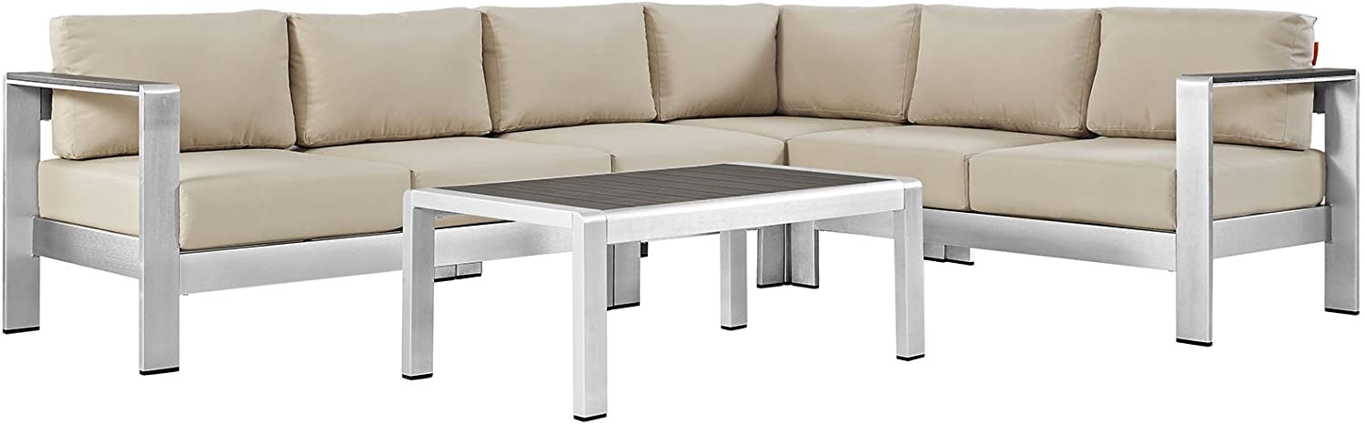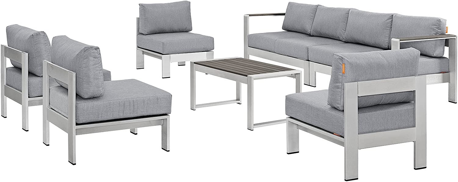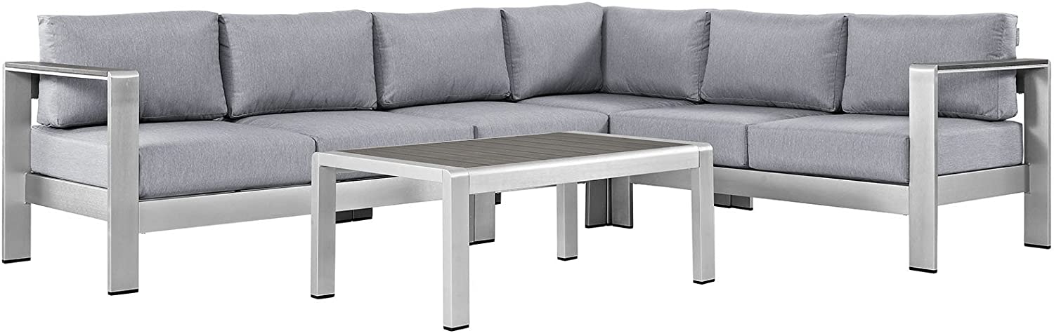 Modway Shore 6-Piece Aluminum Outdoor Patio Sectional Sofa Set in Silver Gray