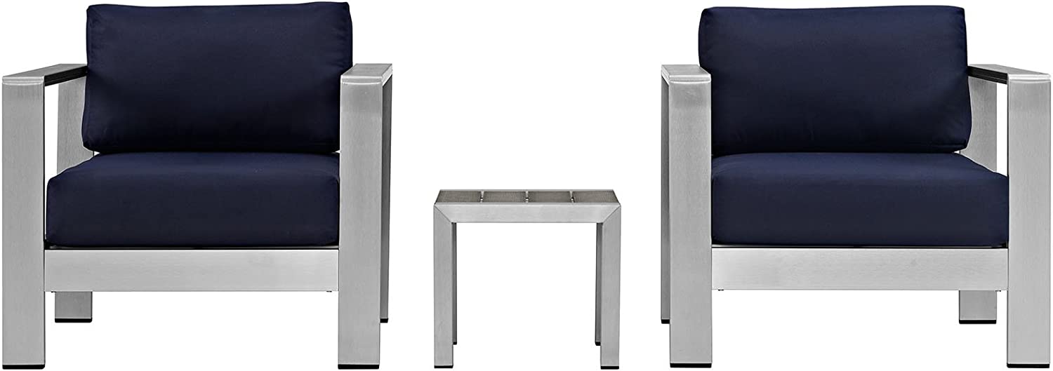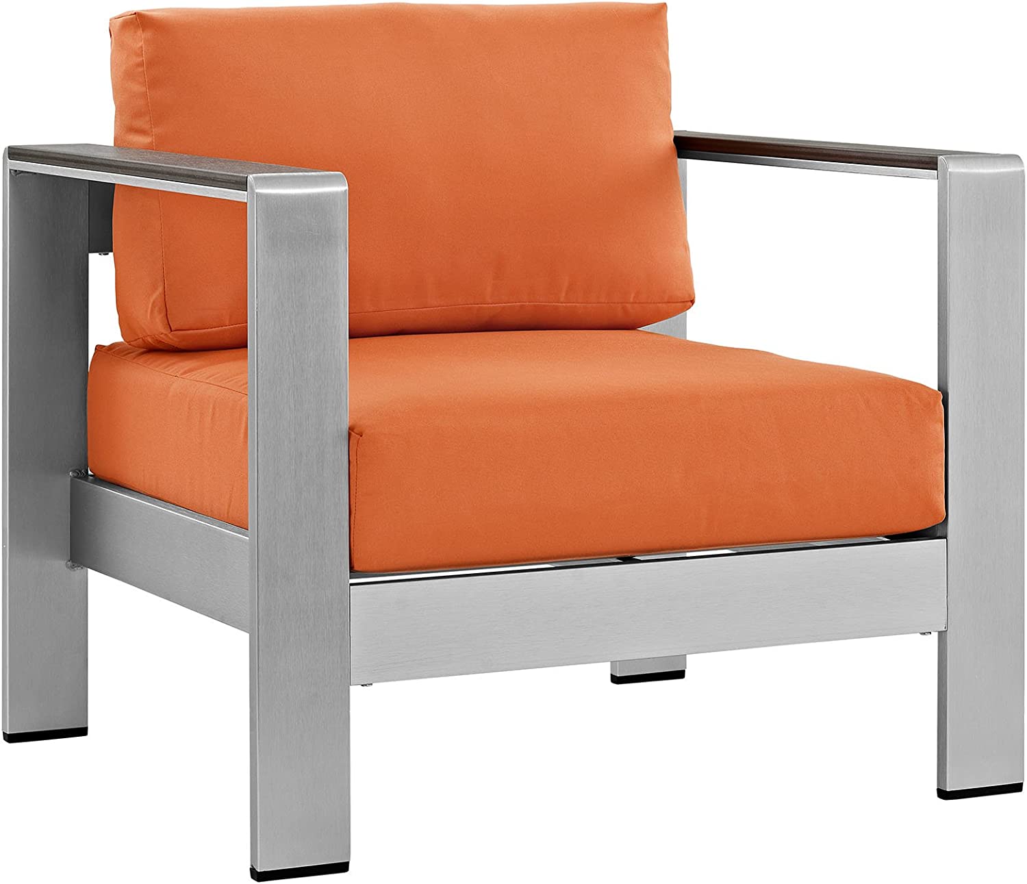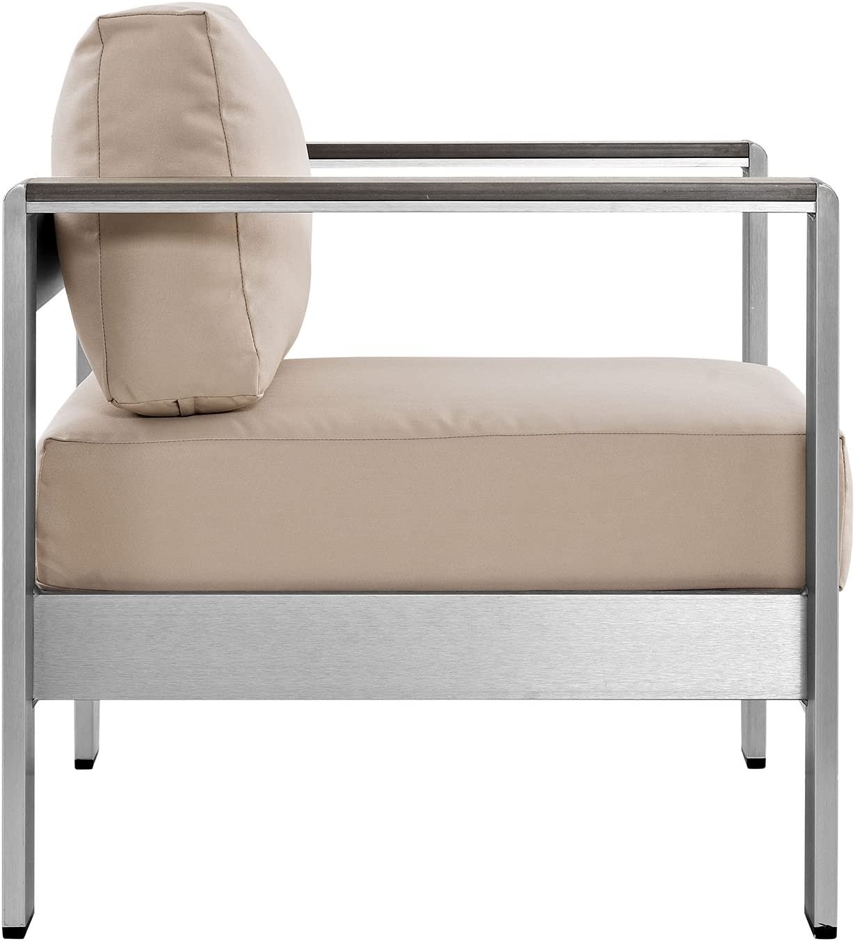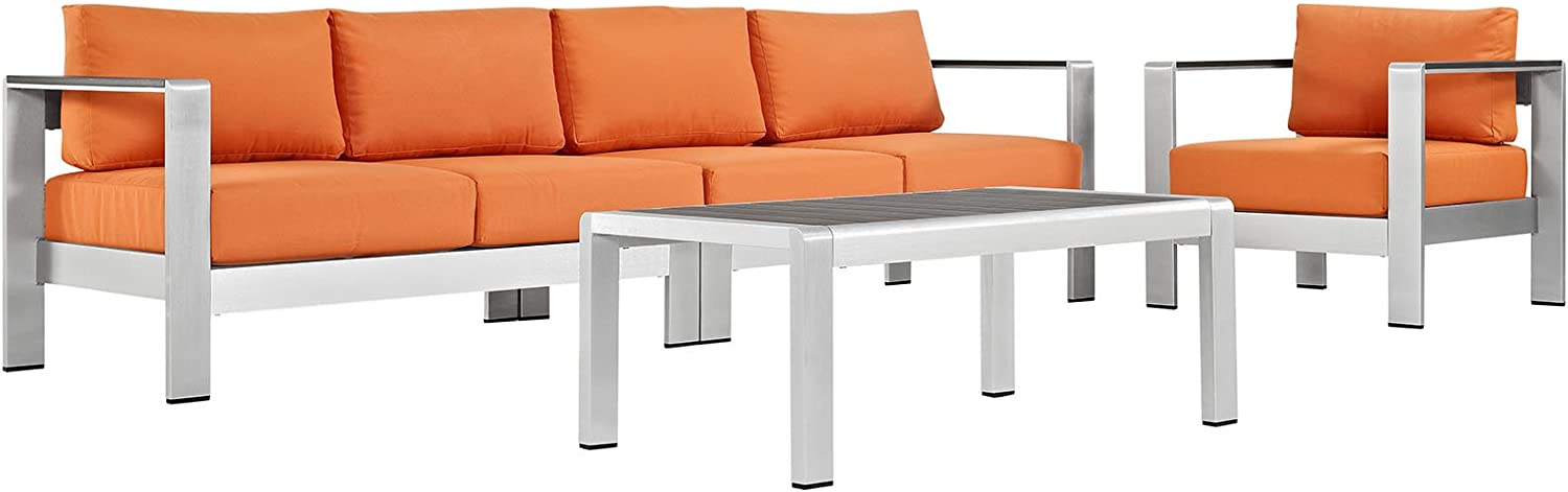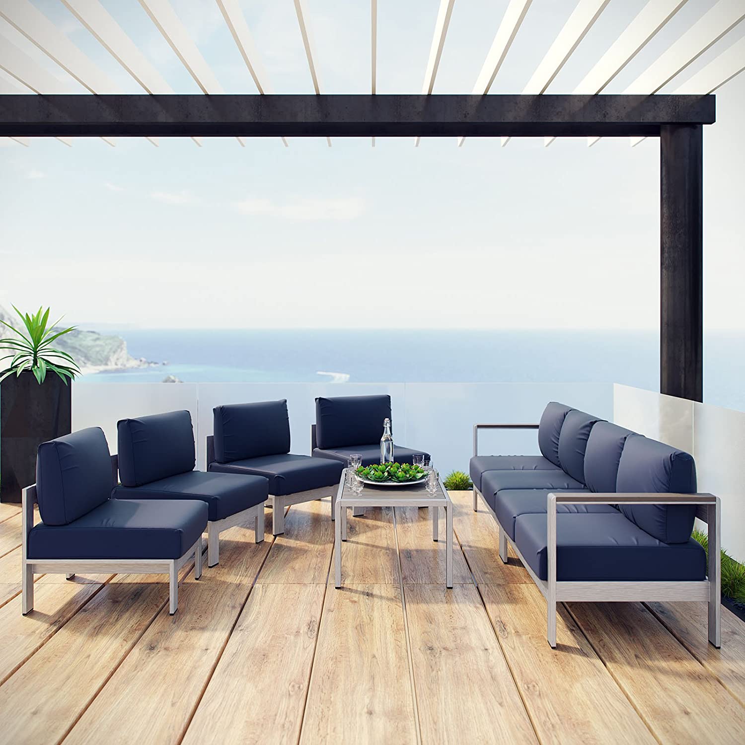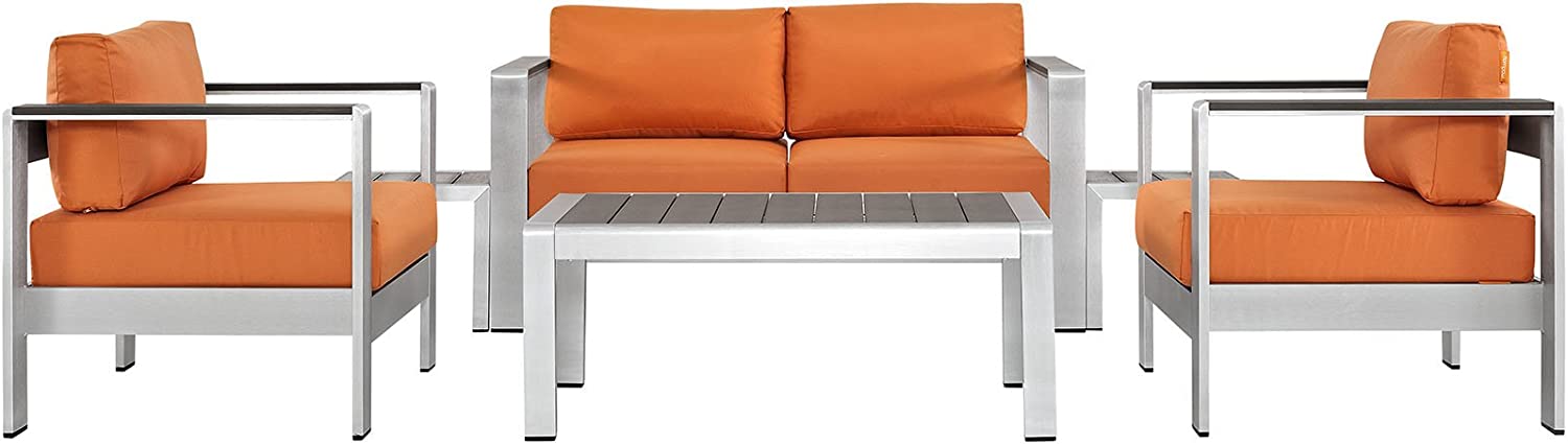 Modway Shore 6-Piece Aluminum Outdoor Patio Sectional Sofa Set in Silver Gray