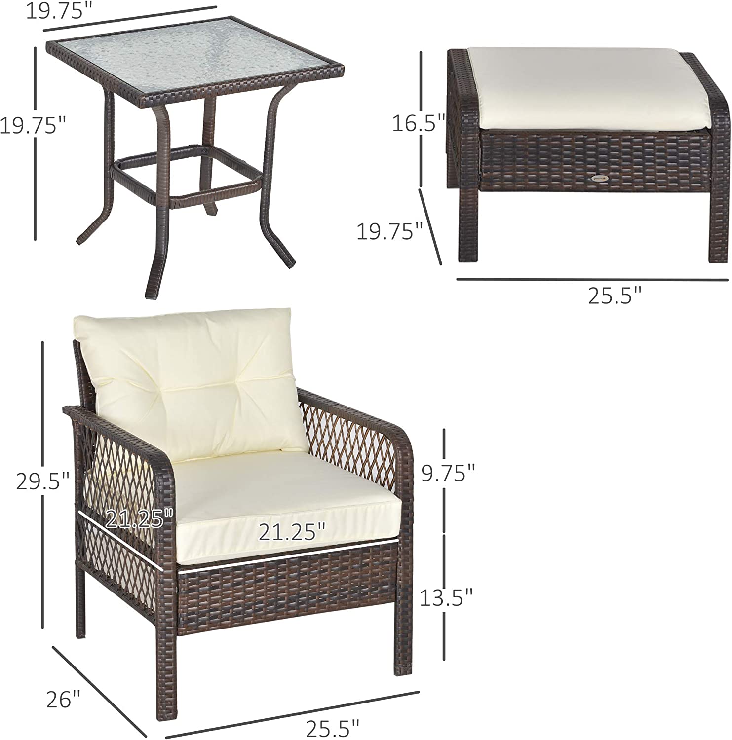 Outsunny 5-Piece Wicker Patio Armchair Set with Ottoman, Outdoor PE Rattan Furniture Set with Comfortable Zippered Cushions & Weather-Fighting Build, Grey