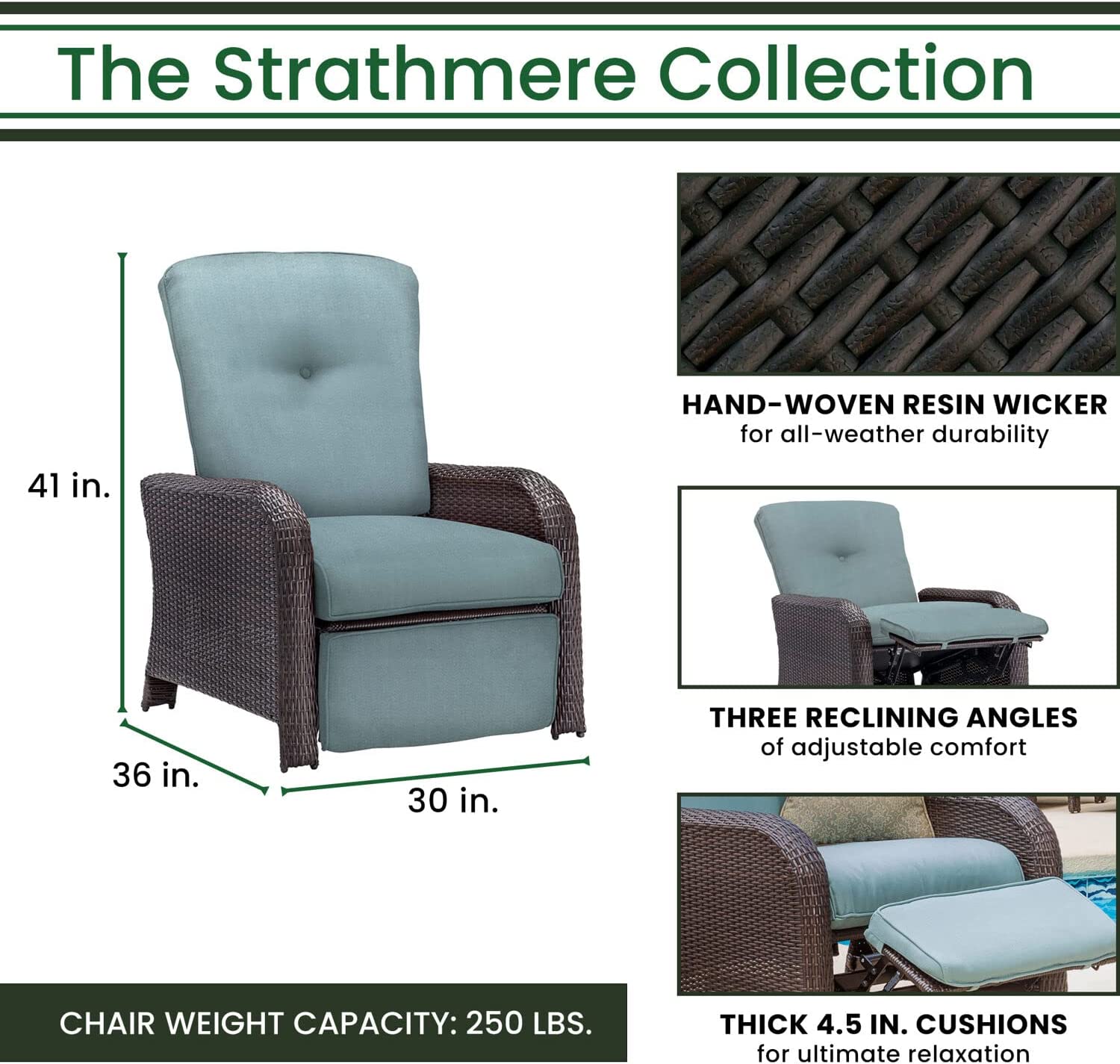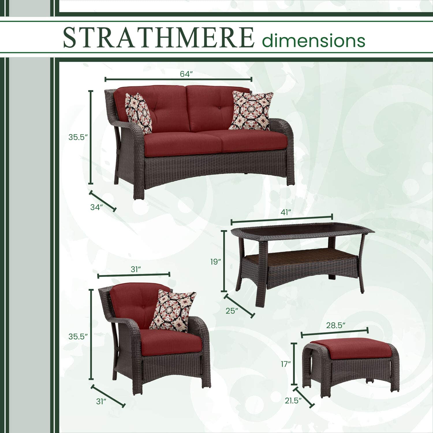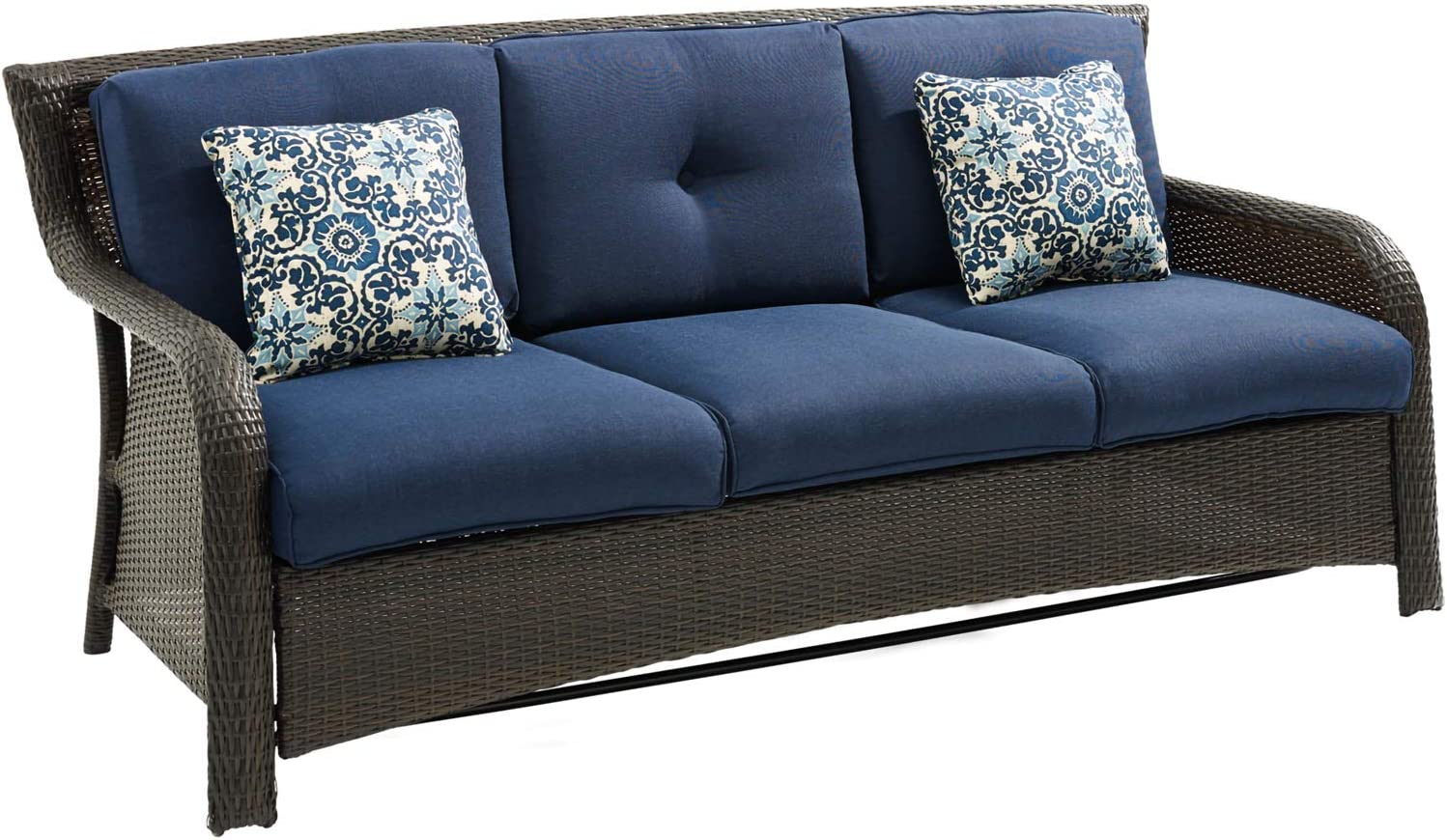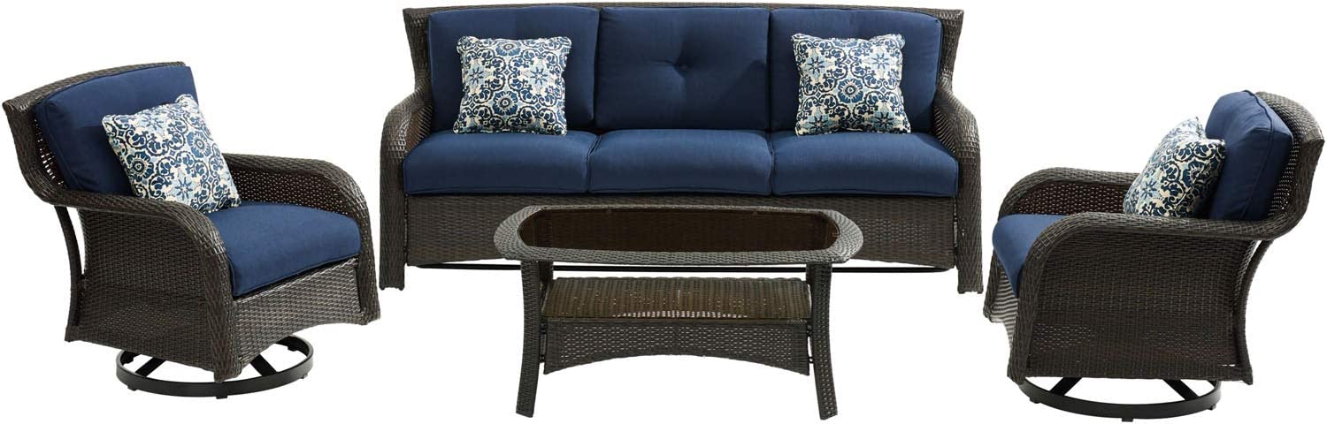 Hanover Strathmere 6-Piece Patio Conversation Set with Sofa, 2 Arm Chairs, 2 Ottomans, Accent Pillows and Tempered Glass-Top Coffee Table