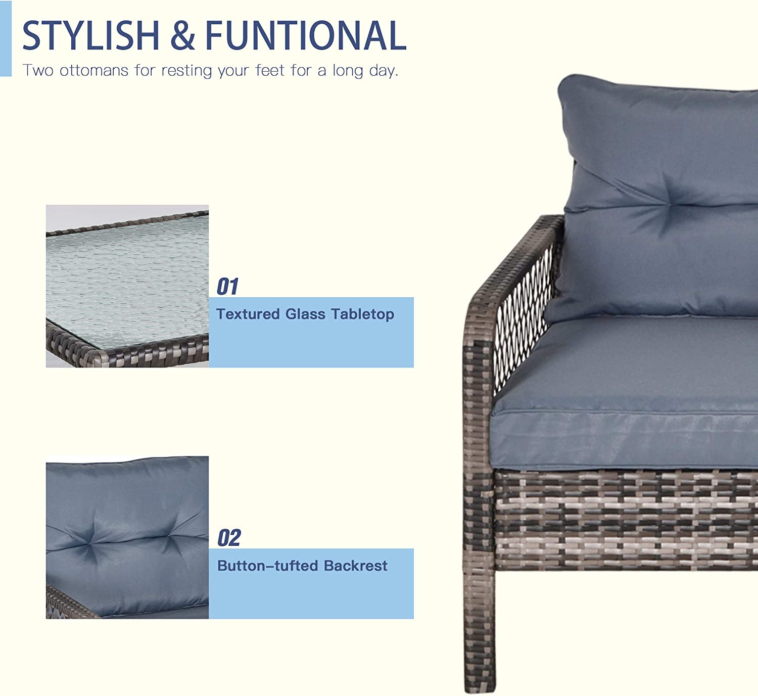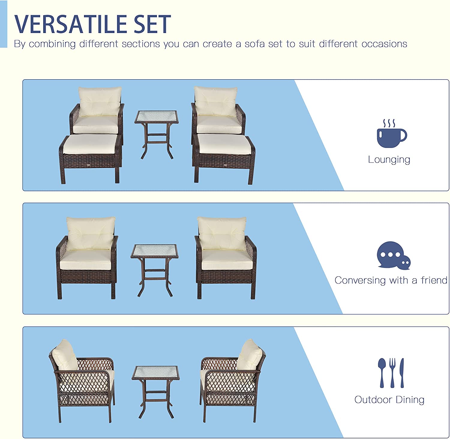 Evedy Funiture 9-Piece Patio Rattan Conversation, Outdoor PE Sectional Sofa Sets(Black Wicker, Beige Cushion)
