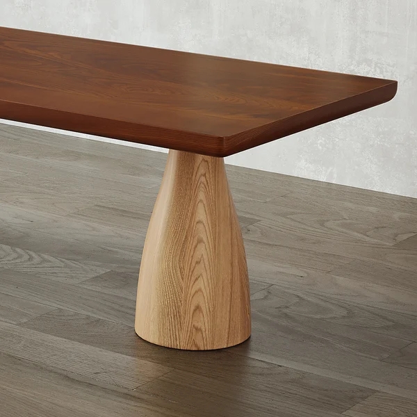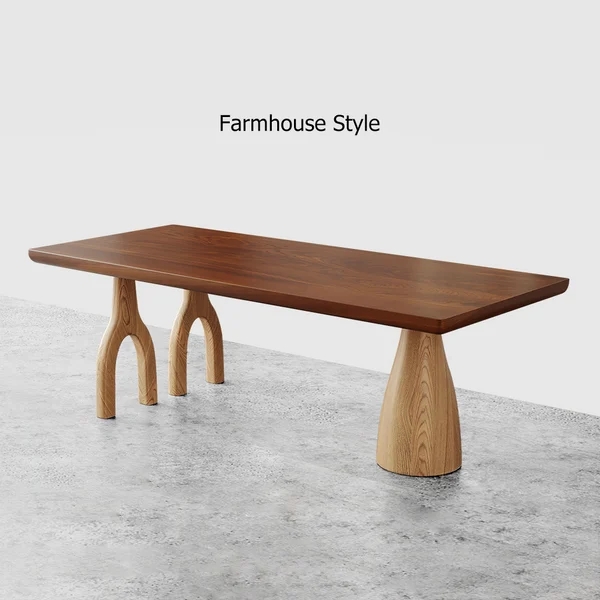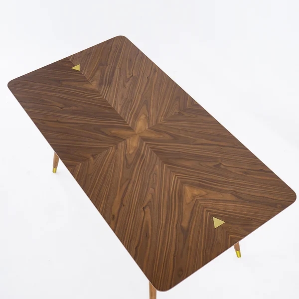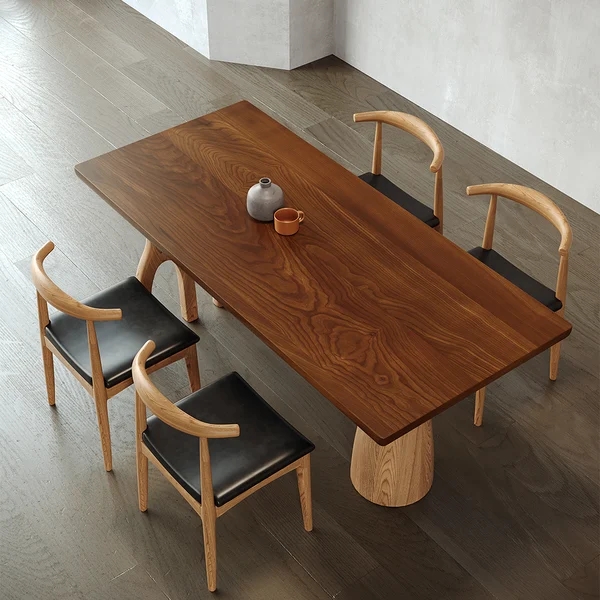 Japandi 55" Solid Wood Dining Table Walnut Rectangle Tabletop for 6 Person