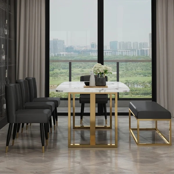 63" Modern Sintered Stone Top Rectangle Dining Table in Pandora & Gold with Trestle