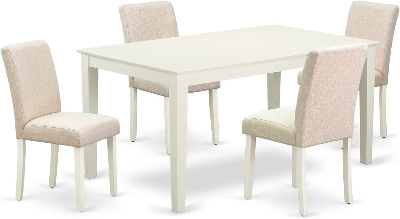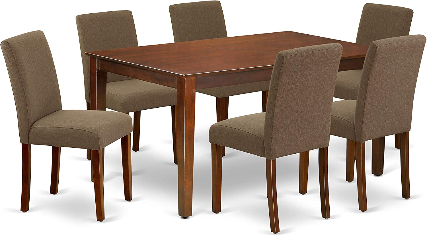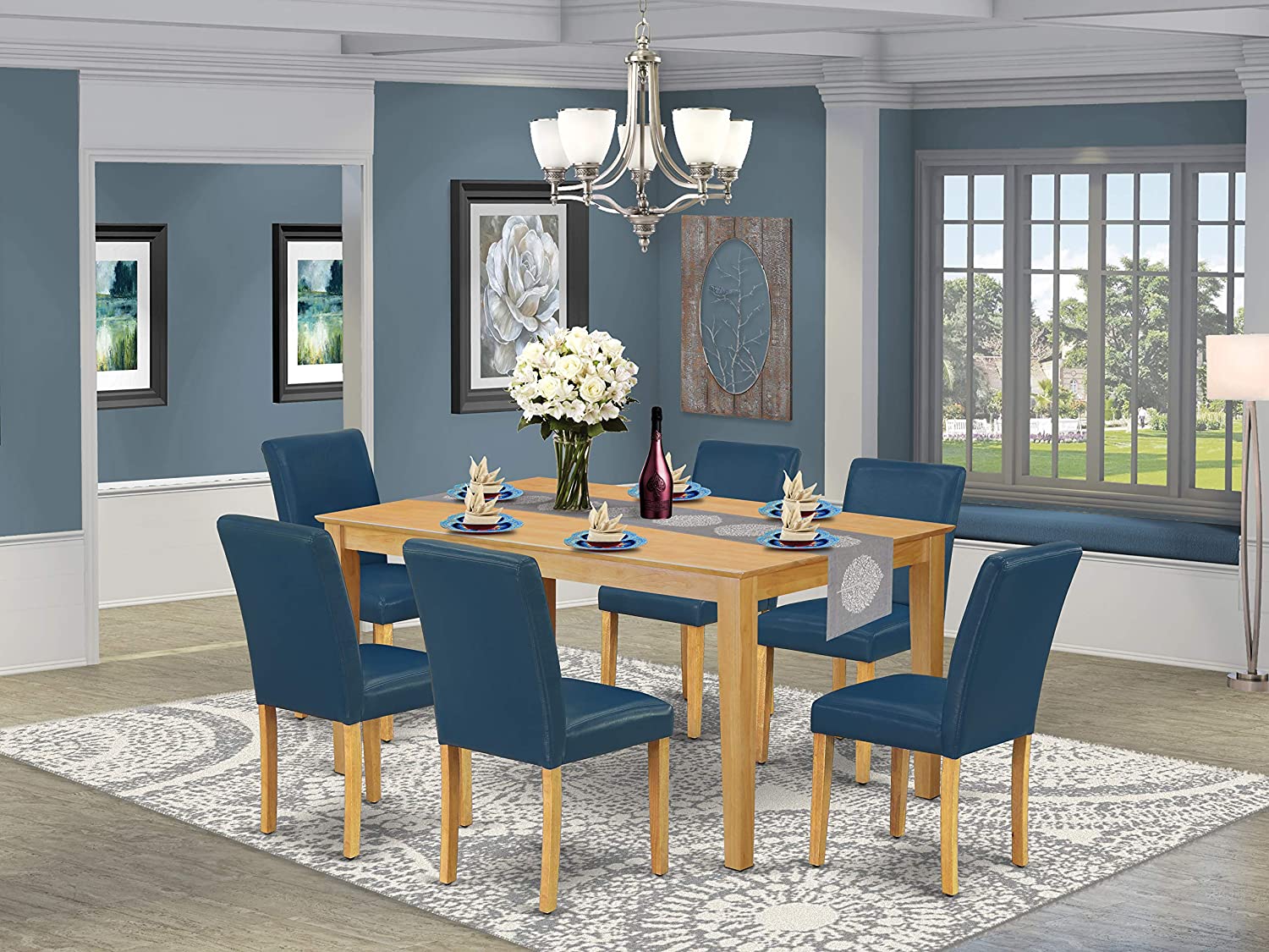 East West Furniture CAAB7-OAK-55 7Pc Rectangle 60" Dining Table And 6 Parson Chair With Oak Leg And Pu Leather Color Oasis, 7 Pieces