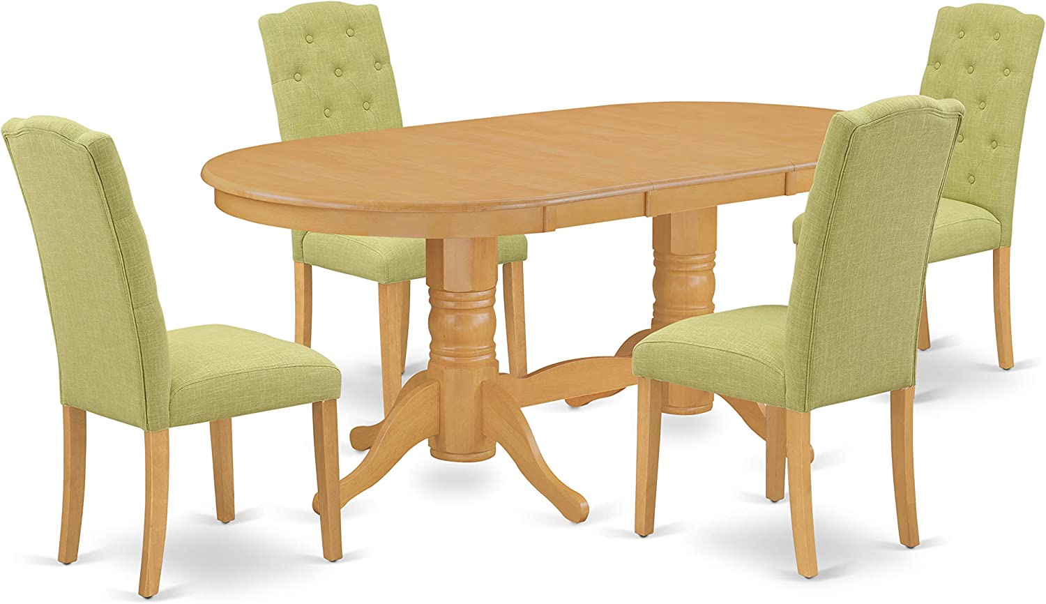 East West Furniture VACE7-OAK-07 7Pc Dinette Set Includes an Oval Dining Table with Butterfly Leaf and Six Parson Chairs with Lime Green Fabric, Oak Finish