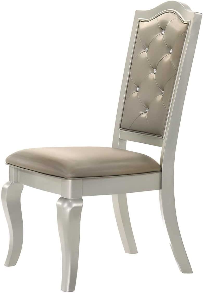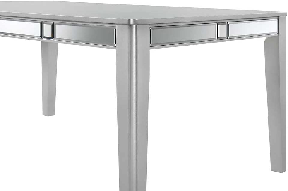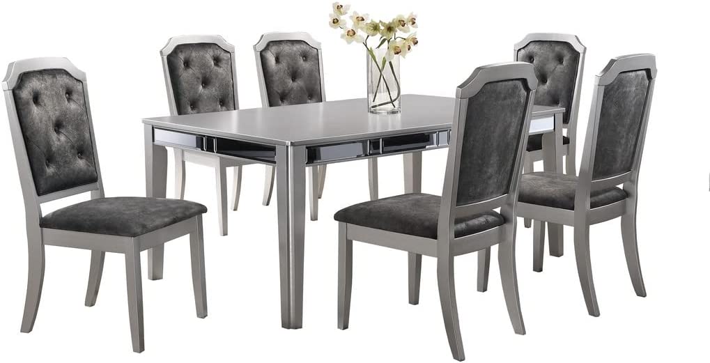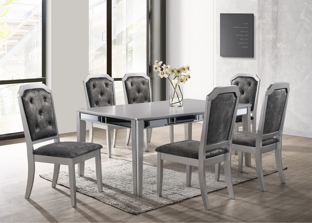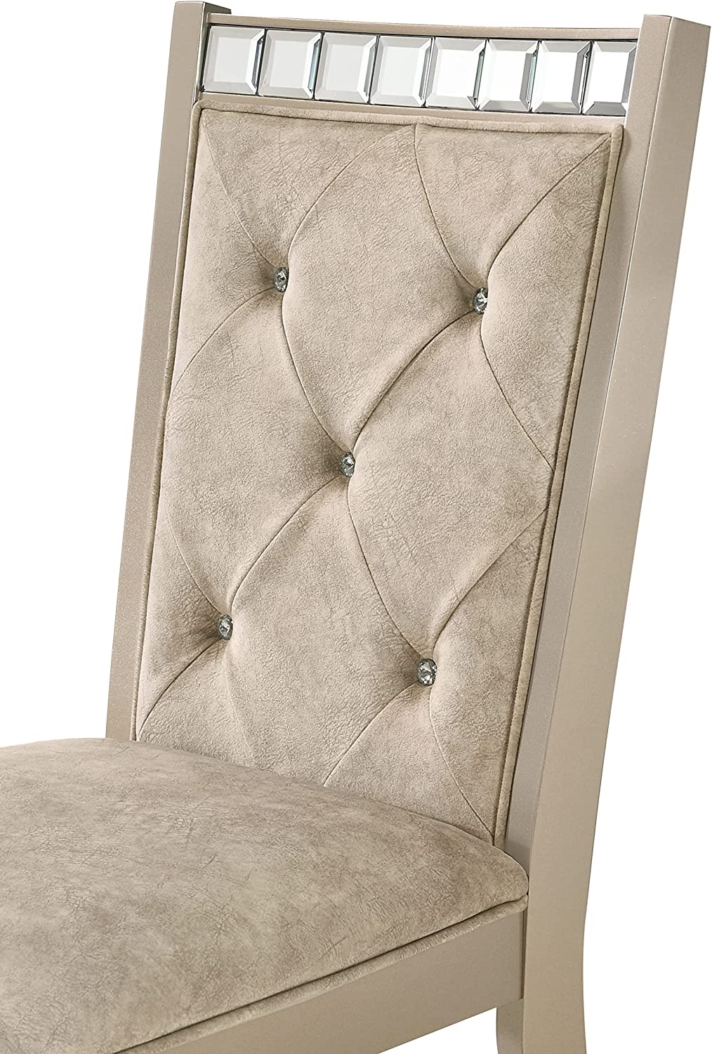 Liveasy Furniture Dining Table Set for 6, Kitchen & Dining Room Sets with Button Tufted Upholstered Chairs and Mirror Tile Edge (Champagne/Beige)
