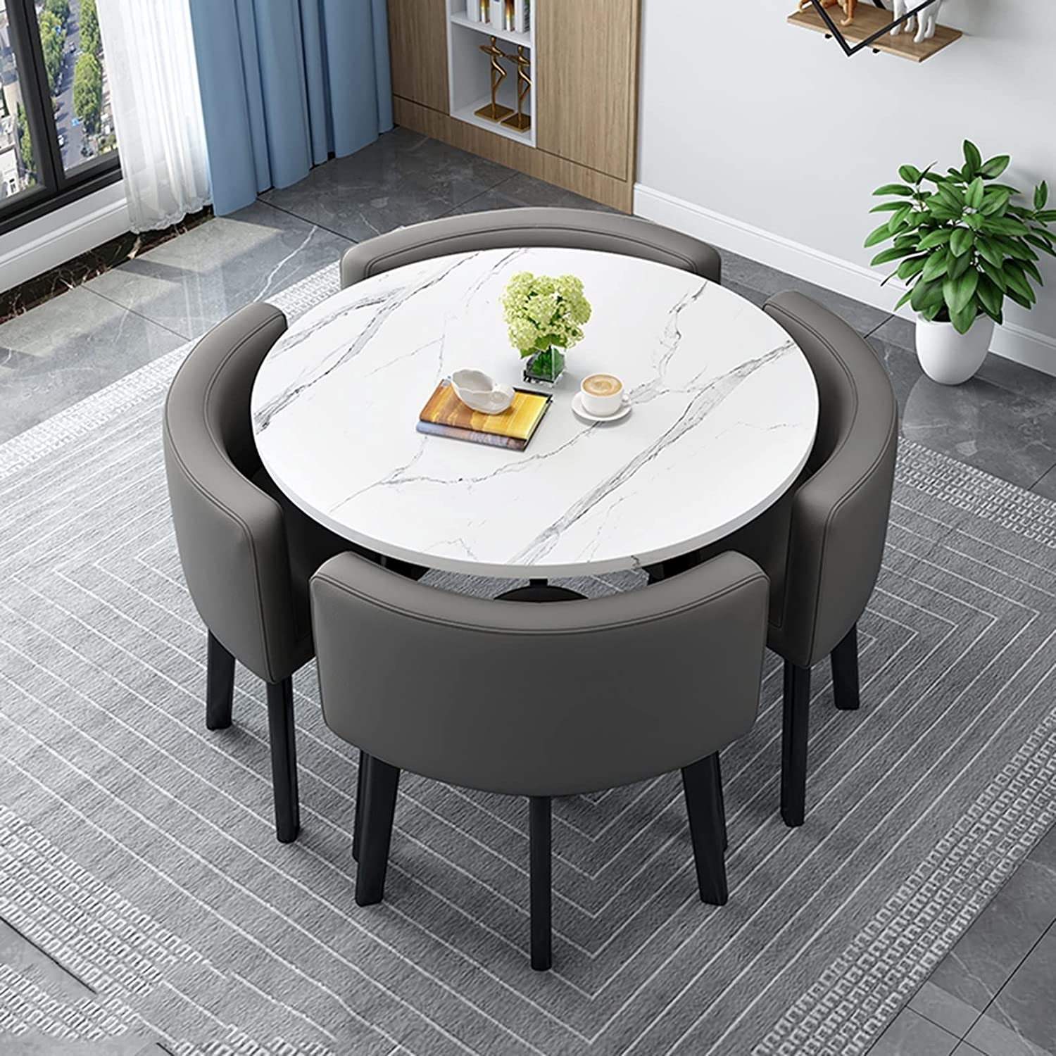 Modern Business Negotiation Dining Table and Chair Combination,Coffee Table Conference Room Table,Leisure Area Home Balcony Small Round Table, Suitable for Lounge, Living Room ( Color : Dark gray , Si