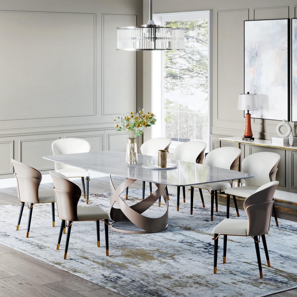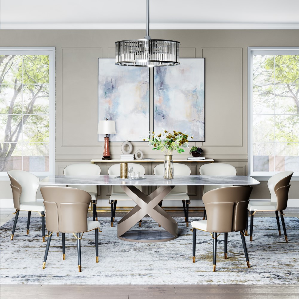 79"Modern Rectangular Dining Table for 6, with Gray Sintered Stone Tabletop, X-shaped Stainless Steel Base