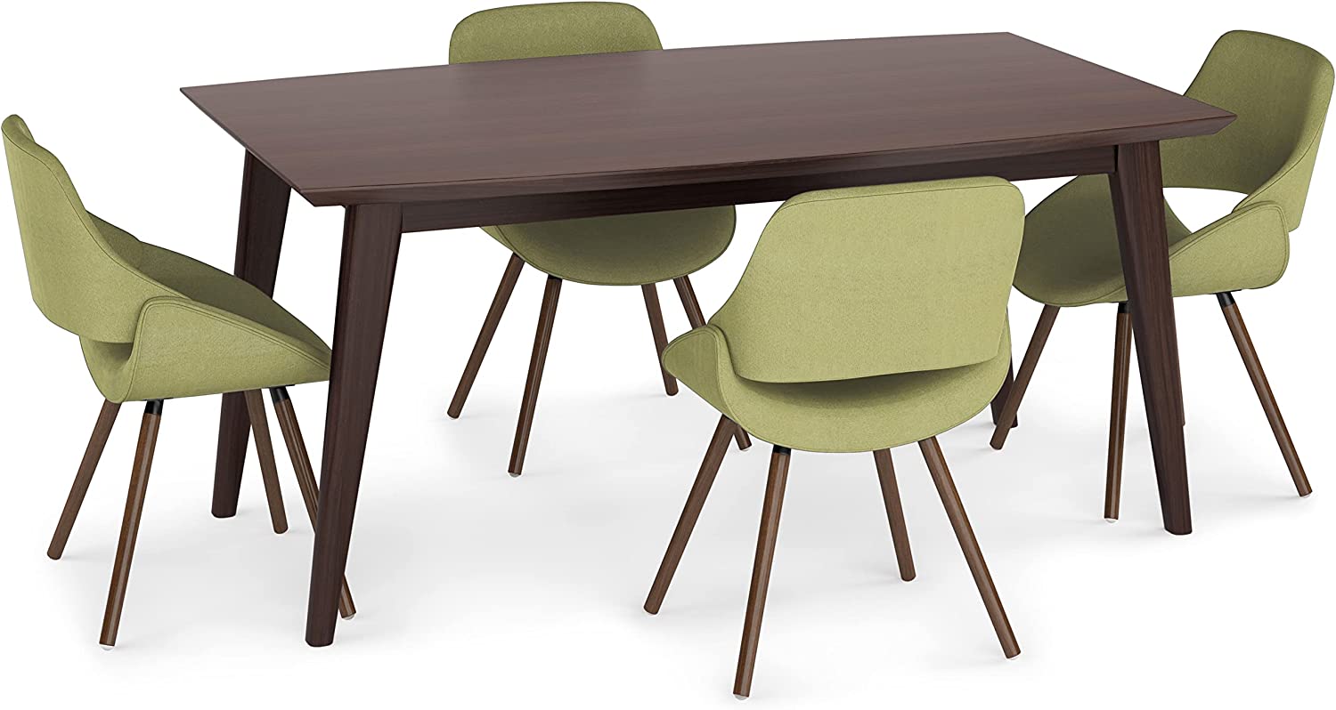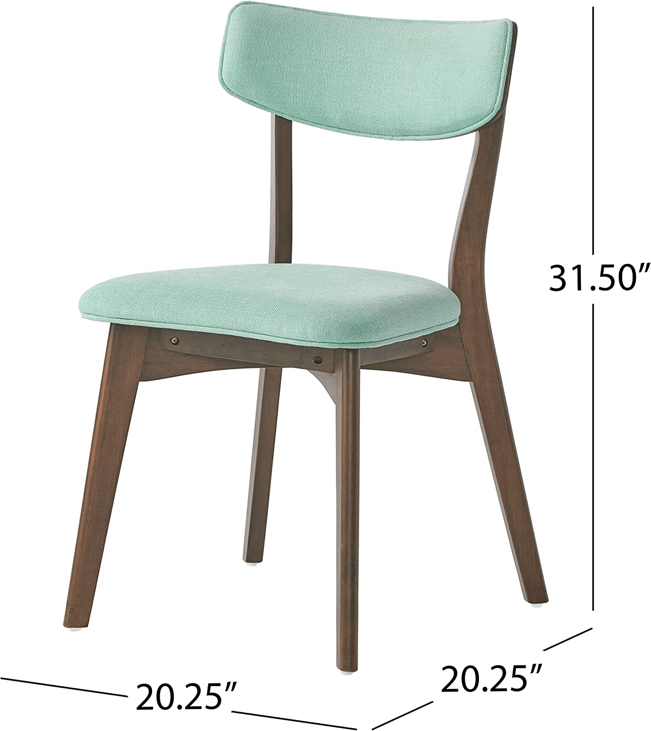 Christopher Knight Home Megann Mid-Century Wood Dining Set with Fabric Chairs, 5-Pcs Set, Natural Walnut / Mint