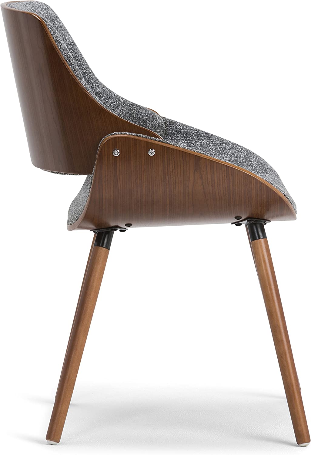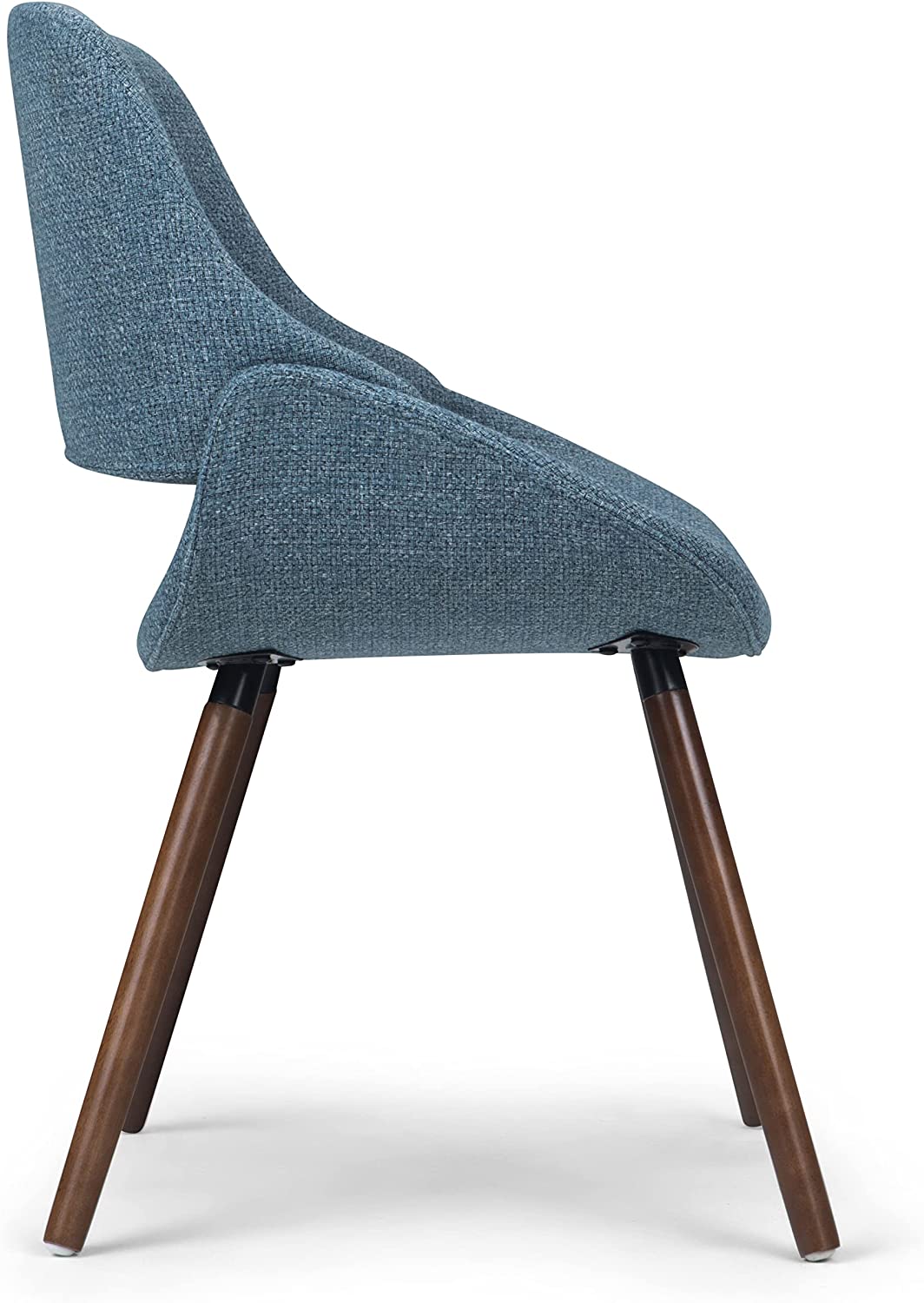 SIMPLIHOME Malden Mid Century Modern V 7 Pc Dining Set with 6 Upholstered Bentwood Dining Chairs in Natural Woven Polyester Fabric and 66 inch Wide Table SOLID MANGO WOOD Full Assembly Required