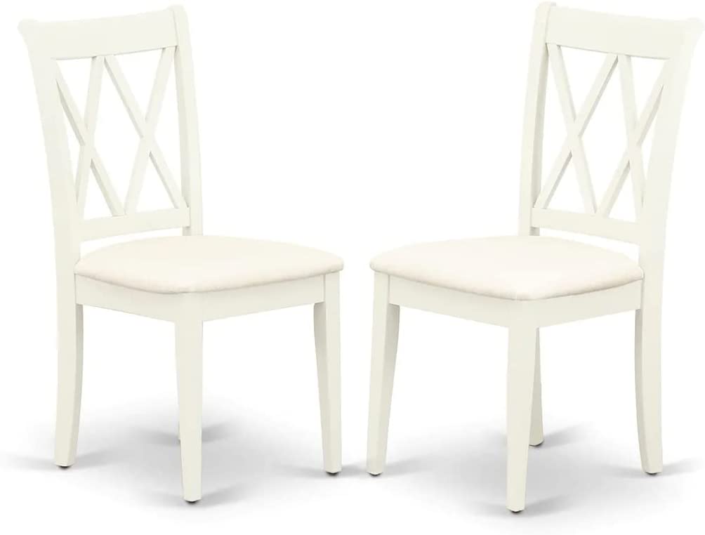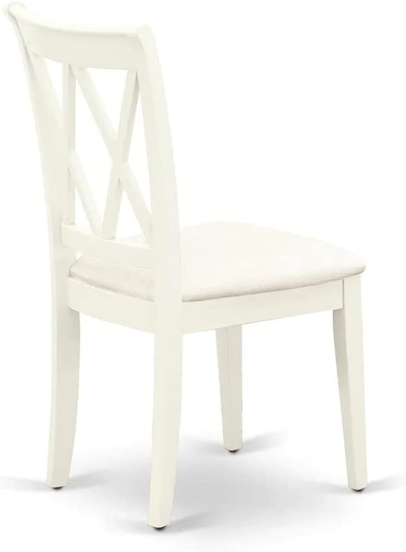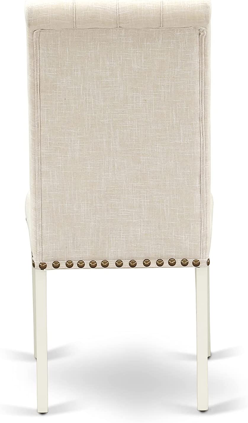 East West Furniture 5Pc Dining Set Includes an Oval Dinette Table with Butterfly Leaf and Four Parson Chairs with Light Beige Fabric, Linen White Finish