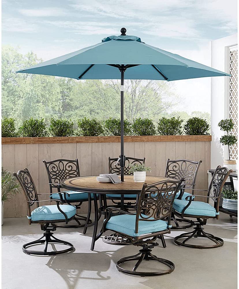 CAMBRIDGE SEAS9PCSWSQ8-BLU Seasons 9-Piece Square Dining Set Outdoor Furniture, Blue