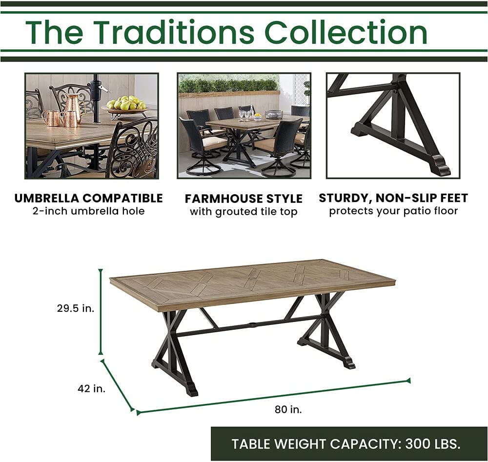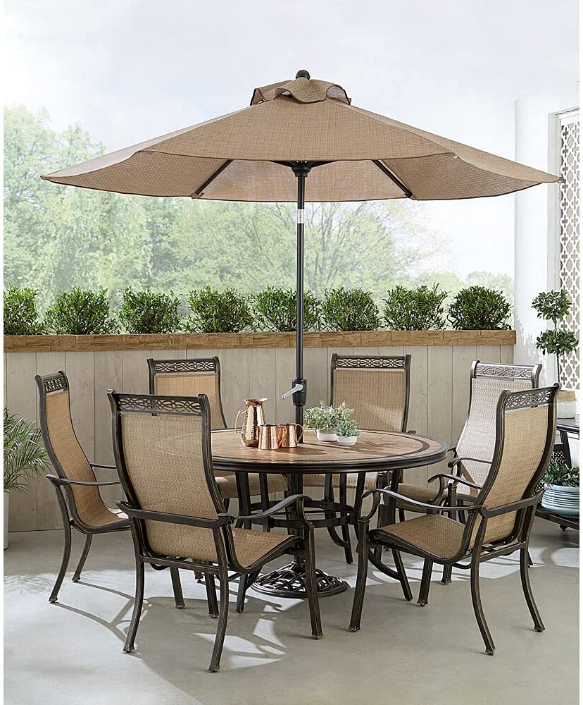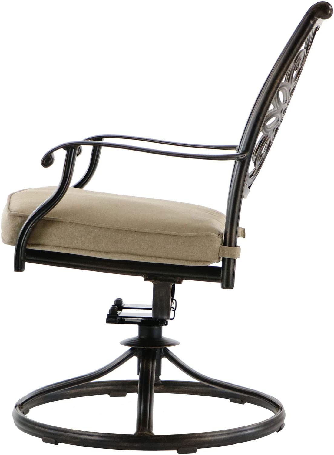 Hanover Montclair 7-Piece All-Weather Outdoor Patio Dining Set, 6 Swivel Rocker Chairs with Comfortable Tan Seat and Lumbar Cushions, 40"x66" Stamped Rectangle Table, MCLRDN7PCSQSW6-TAN