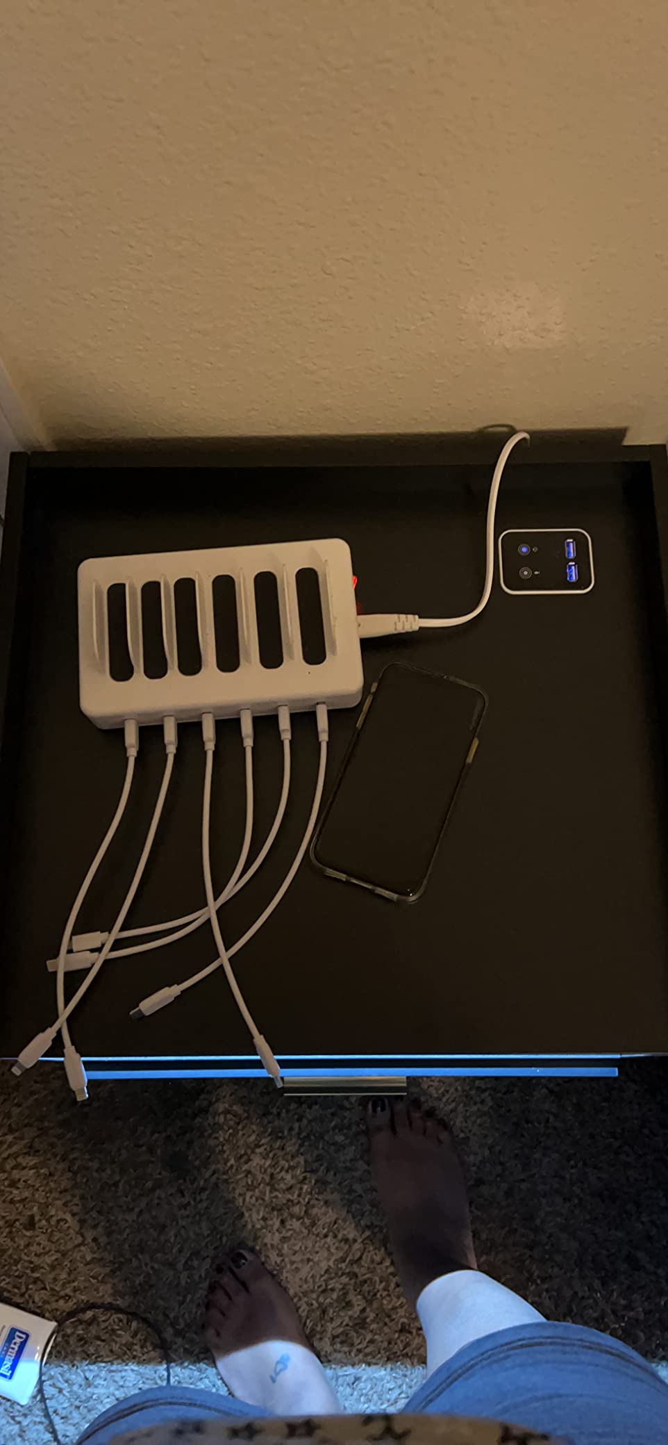 【Furniture】Black Nightstand with Charging Station, Night Stands with 2 Drawers, Smart Nightstand Bedside Table Led