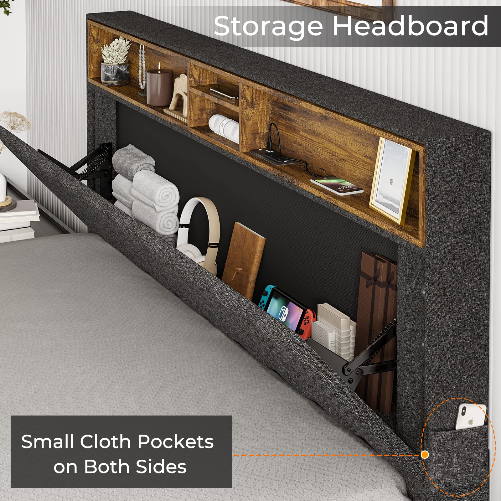 【Furniture】Nightstands Wireless Charging Station and LED Lights, Modern End Side Table with 3 Drawer