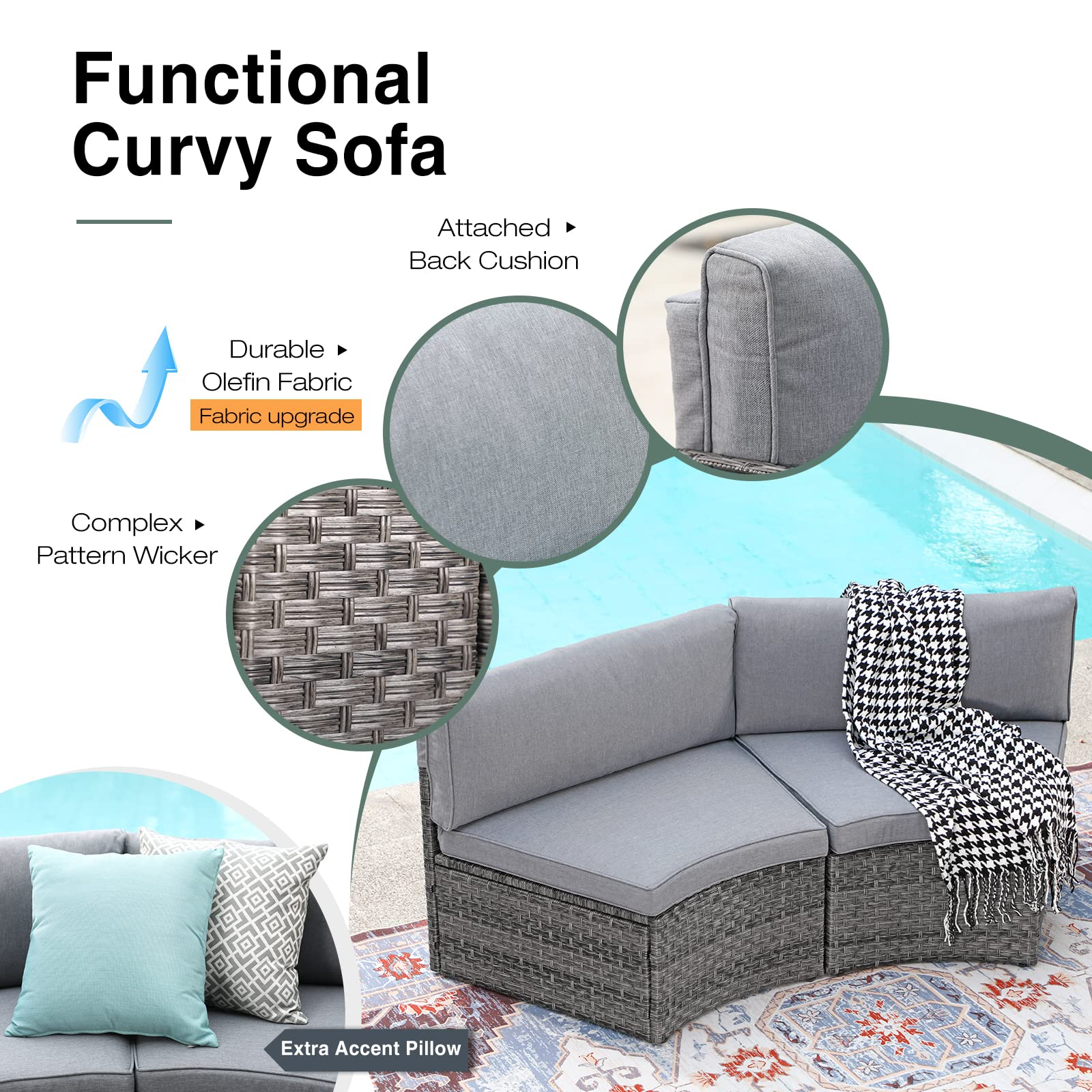 【Home&Garden】Outdoor Patio Furniture 11-Piece Half-Moon Sectional Round Patio Furniture Set