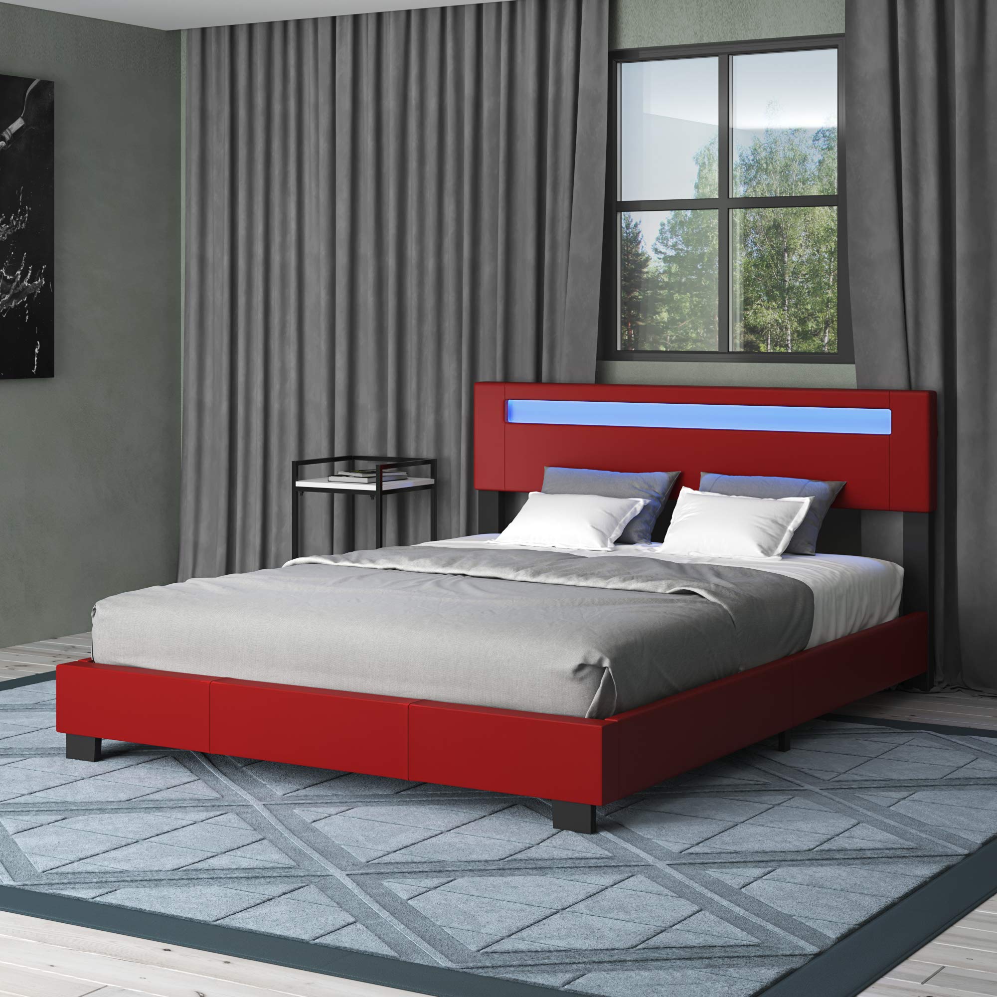 【Furniture】Racing Car Bed for Kids - Kids Car Bed with Led Lights, Single Race Car Bed with Leather Cushioning