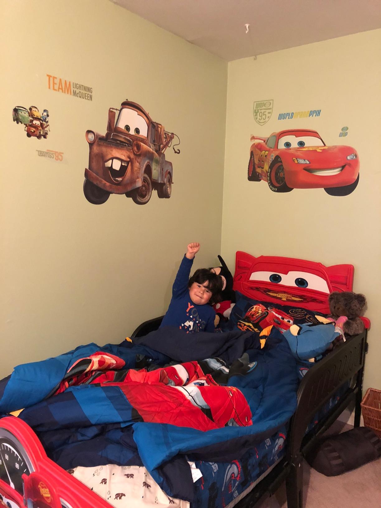 【Furniture】Twin Size Kids Platform Bed, Race Car-Shaped Bed with Wheels Design, Faux Leather Upholstered Bed Frame