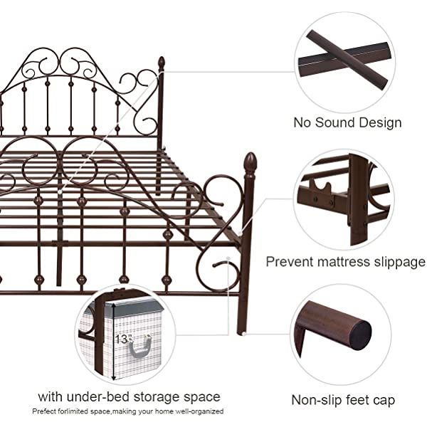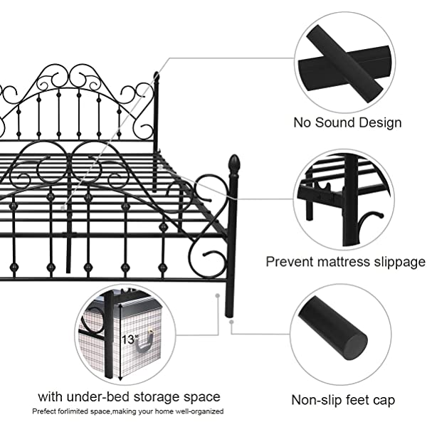 Black Queen Platform Metal Bed Frame with Headboard and Footboard,Vintage Victorian Style Mattress Foundation, No Box Spring Required, Black,Queen. Queen Black