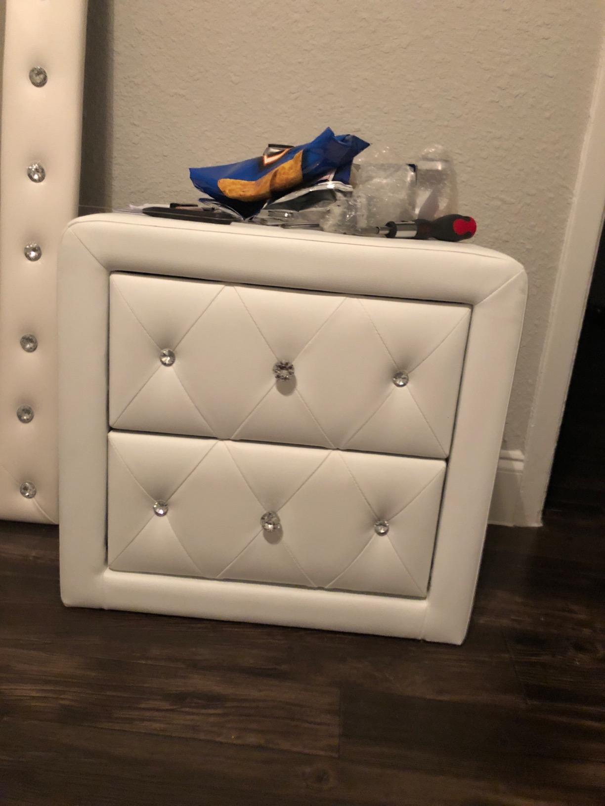 【Furniture】Modern Mid-Century Upholstered Night Stand with 2 Drawers for Bedroom Wood Bedside End Table