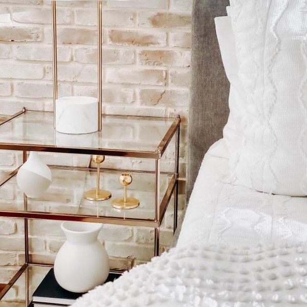 【Furniture】Nightstand with 2 Storage Drawers, Bedside Table with Gold Legs, End Table-Black