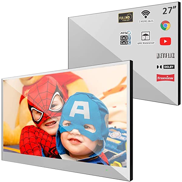 Soulaca 32 inches Smart Mirror Color LED TV for Bathroom IP66 Waterproof WiFi Shower Television Android Bluetooth 32 inches Mirror