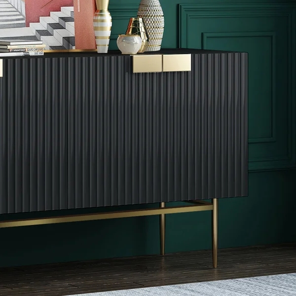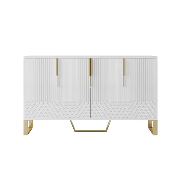 Medally 59" White Wood Sideboard Buffet Cabinet with Storage 3 Doors Gold Base