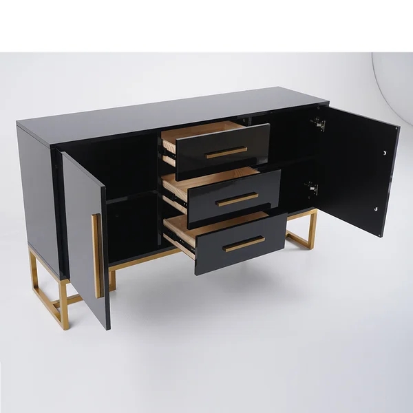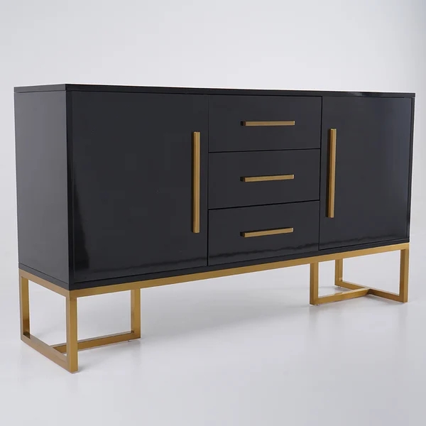Stovf 59" Black Sideboard Buffet with Drawers Modern Wood Dining Room Sideboard Cabinet