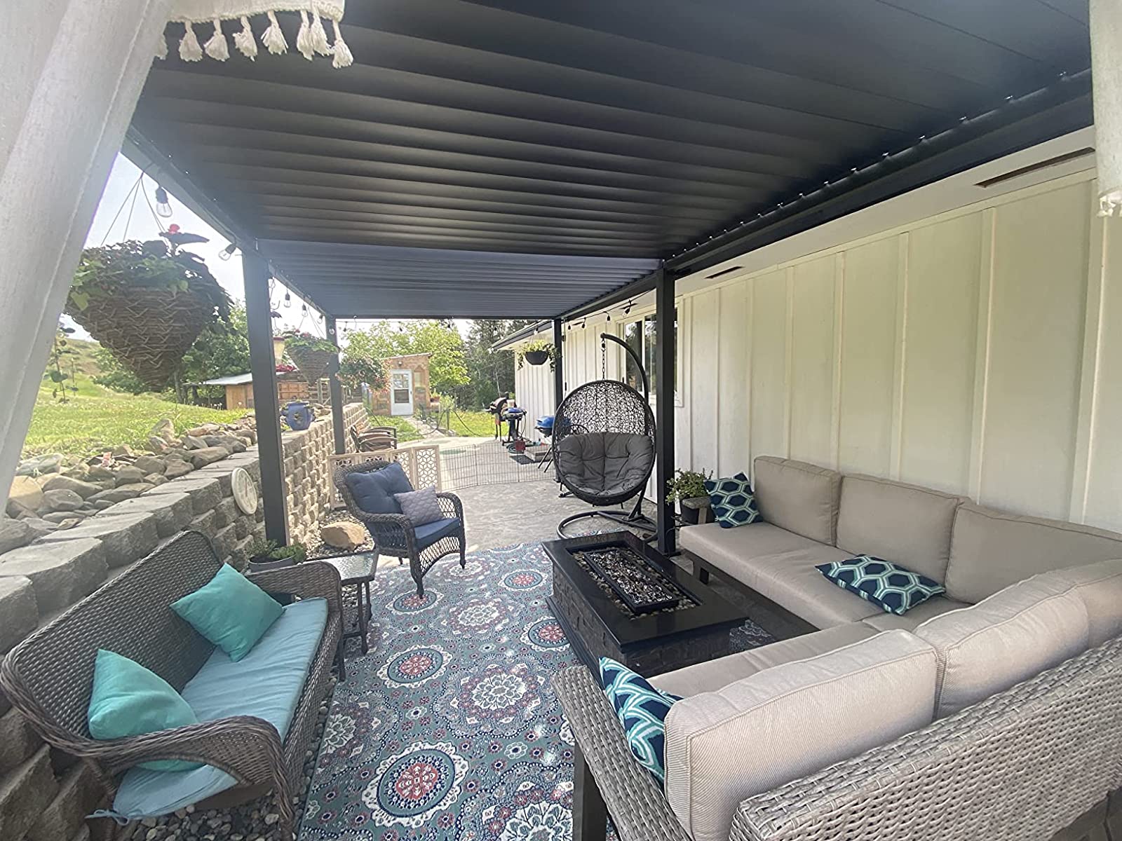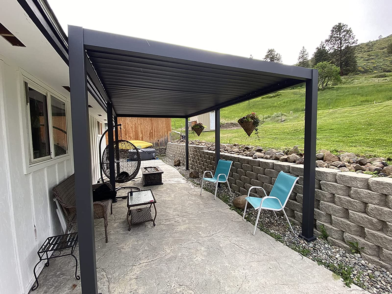 Premium Material&Sturdy Structure: Composed of engineering structure design, powder coated aluminum frame and steel louvers, the pergola is sturdy, rust&corrosion resistant that last for years of usage. The wind resistance is up to 65 mph