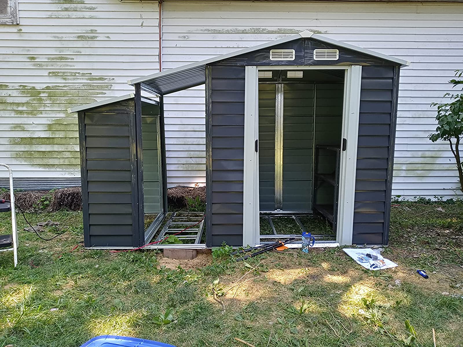 Love my shed. It took 3 of us to put it together in 6 hours. I highly recommend you wear gloves when assembling this shed me and my husband sliced our fingers up something nice. But overall great product at a great price. Thank you
